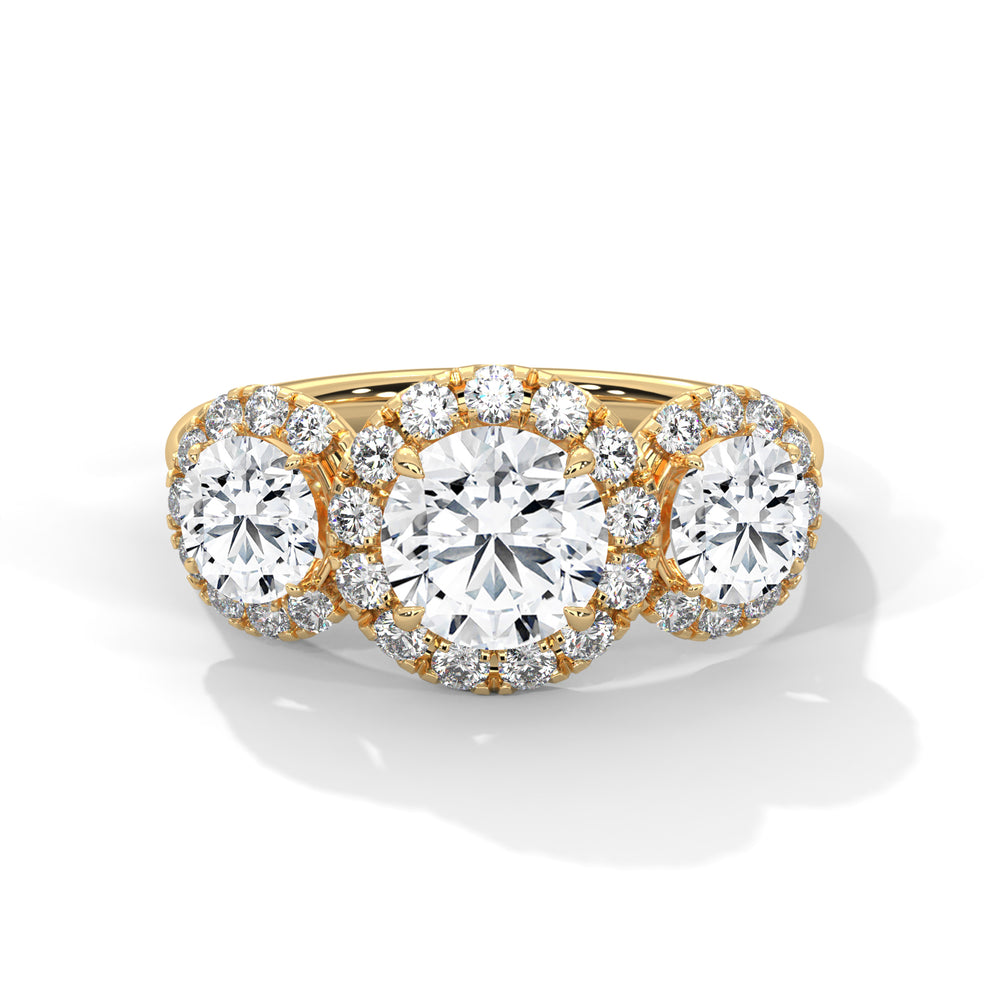 Lillie Three Stone Ring brings a touch of luxury to your everyday attire, infusing it with creative elegance. Crafted with gold and diamonds, it's an ideal accessory for any occasion.